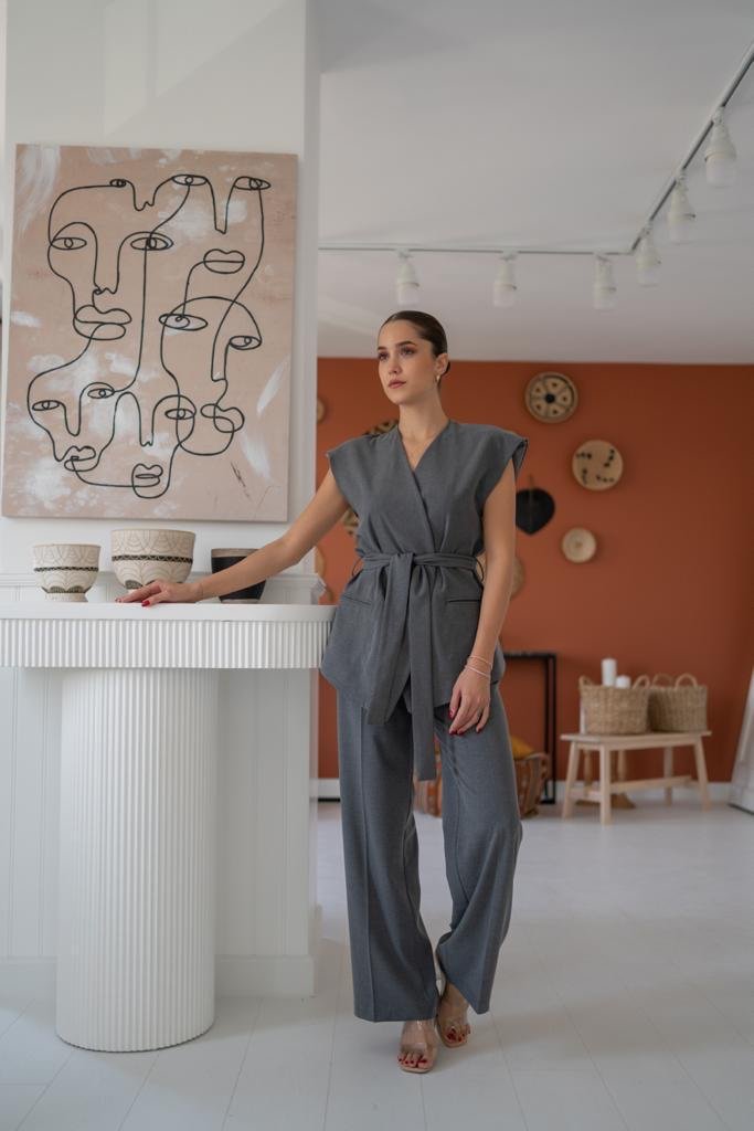 Elegante grijze jumpsuit met ceintuur