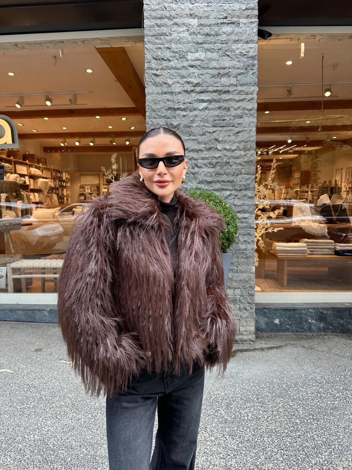 Stijlvolle Bruine Vachtjas met Ceintuur