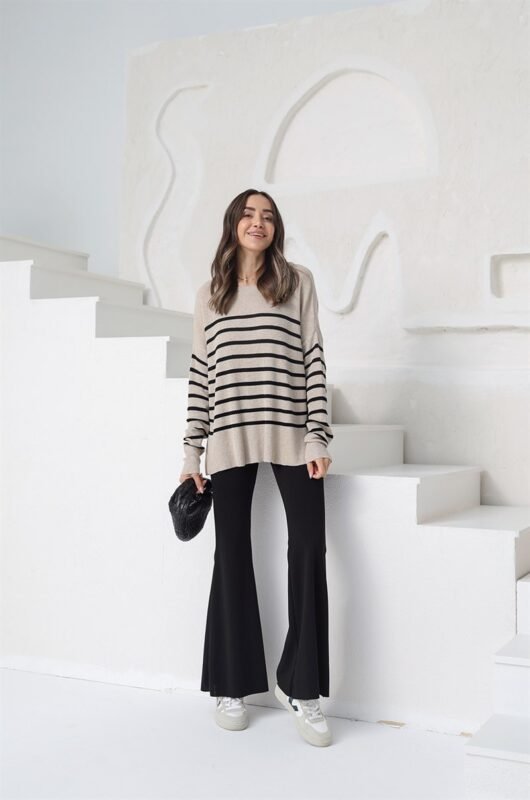 Deze stijlvolle beige legging is een perfecte mix van comfort en trendy details. Het hoge tailleontwerp zorgt voor een slank silhouet, terwijl de subtiele split aan de voorkant een moderne en elegante touch geeft. Dankzij het stretchmateriaal biedt de broek ultiem draagcomfort en bewegingsvrijheid. Ideaal te combineren met truien, blouses of casual sneakers.