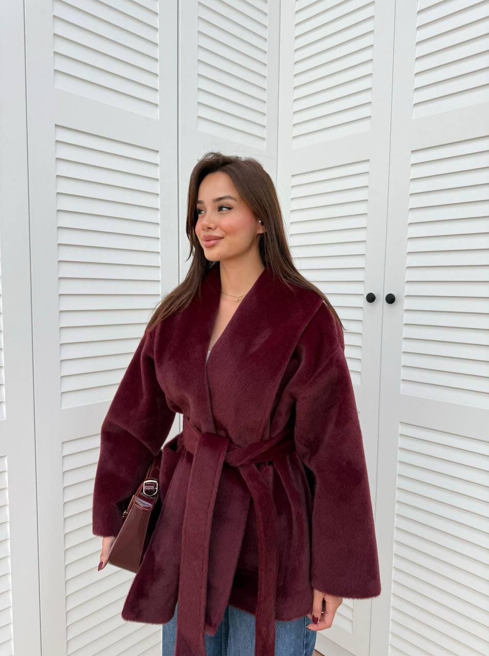 Deze zachte, warme vachtjas in bordeaux geeft elke outfit een chique en moderne look. De strikceintuur accentueert mooi je taille. Perfect voor dagelijks gebruik en ideaal voor het nieuwe seizoen — stijlvol, elegant en onmisbaar!