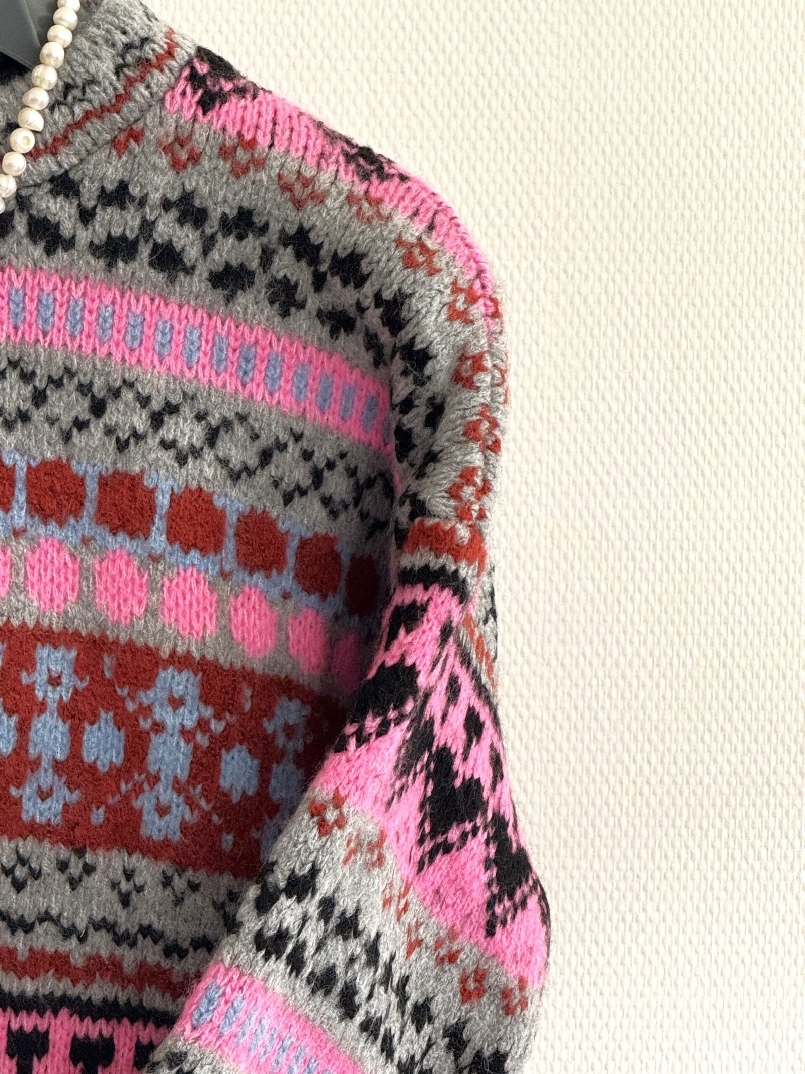 Oversized Gebreide Trui met Roze en Grijze Patronen