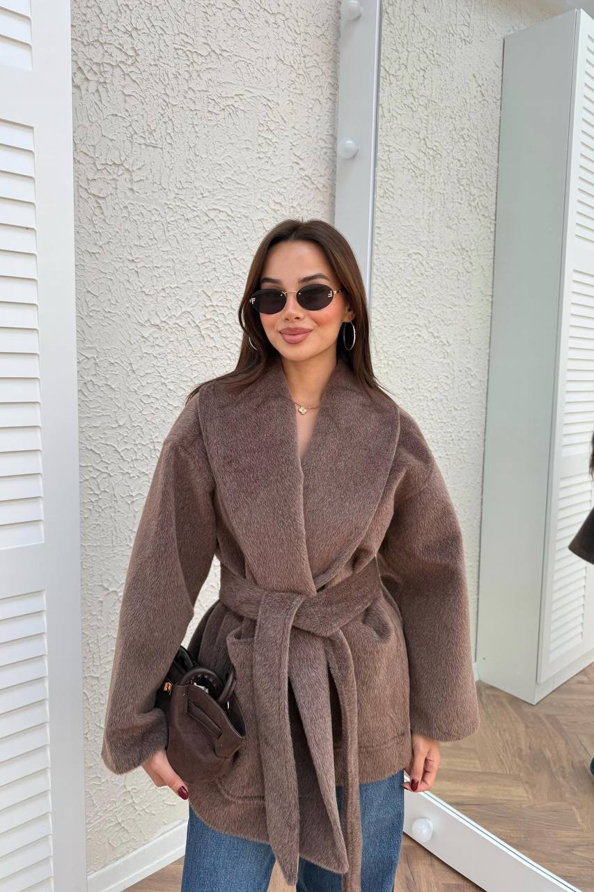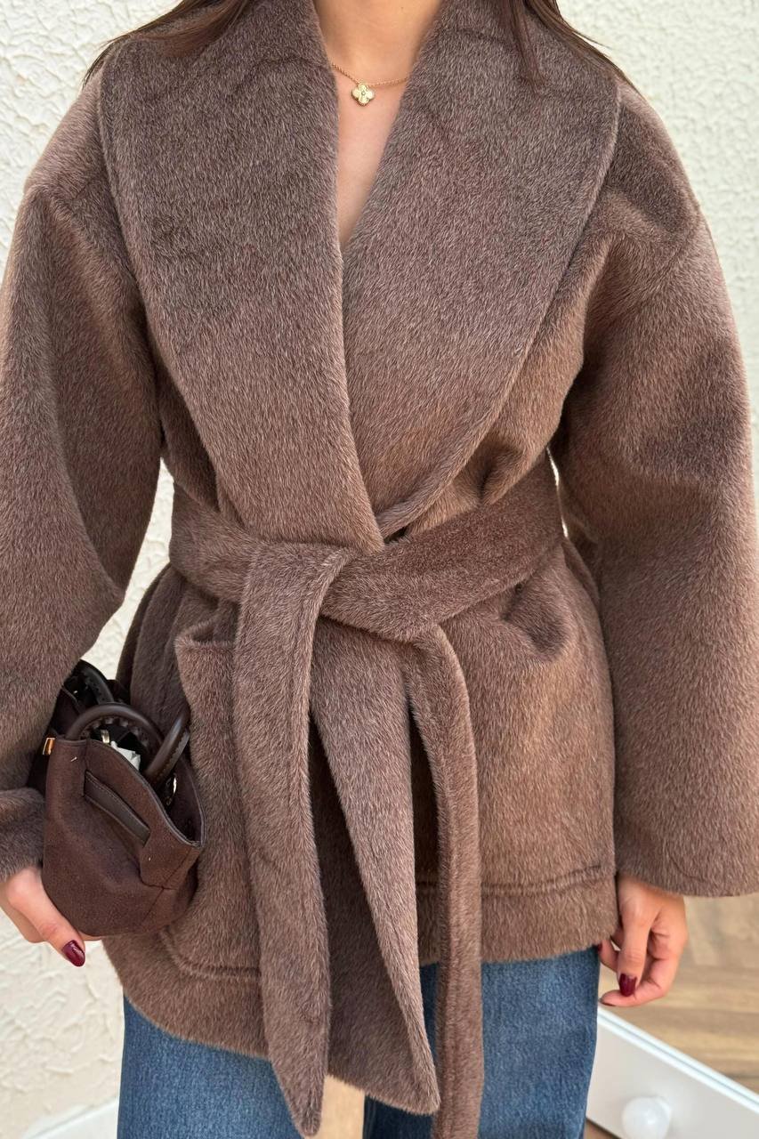 Stijlvolle Bruine Vachtjas met Ceintuur