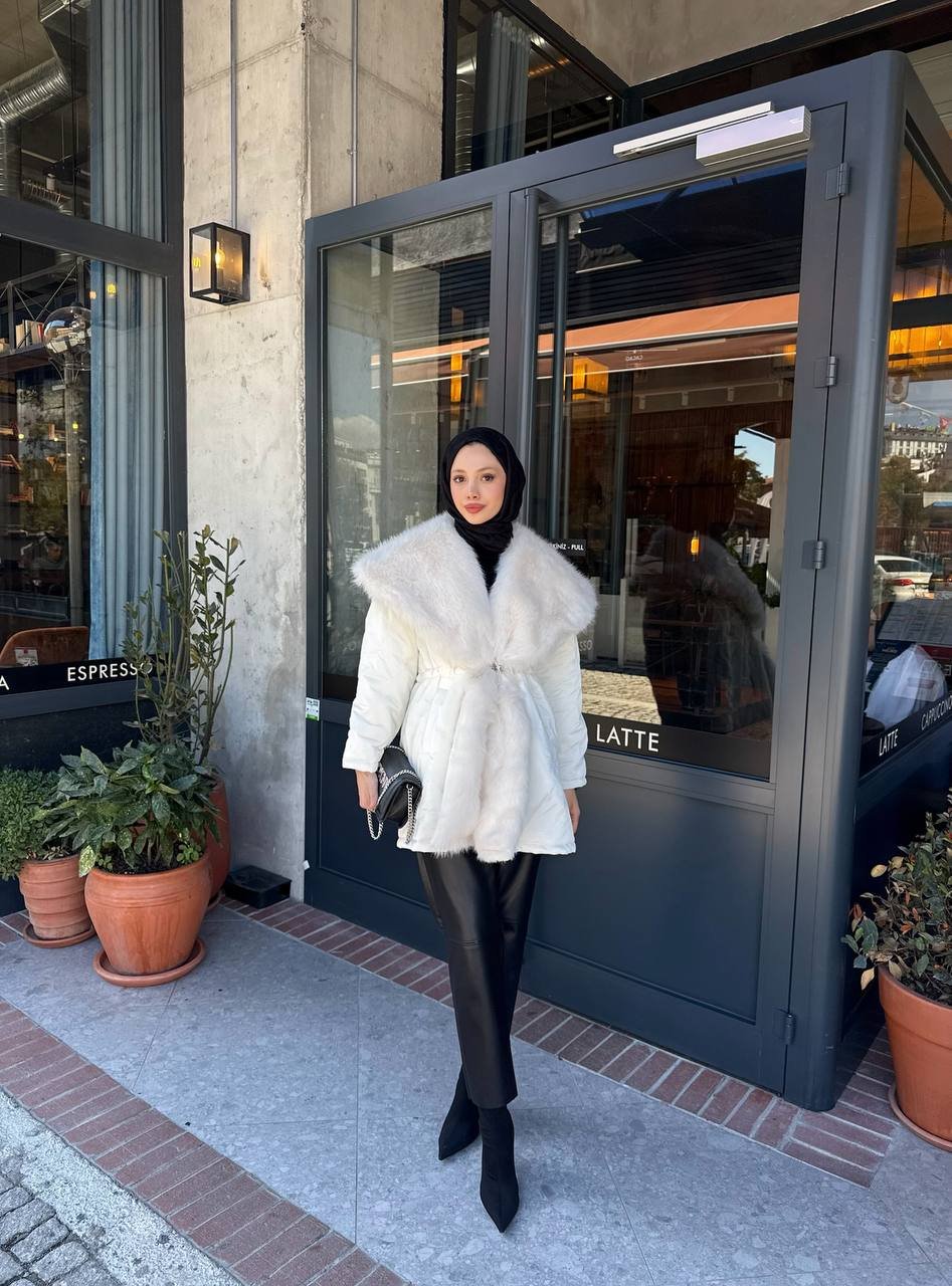 Deze stijlvolle winterjas met een luxe witte bontkraag is een echte blikvanger voor de koude seizoenen. De royale, zachte kraag zorgt niet alleen voor een elegante uitstraling, maar biedt ook extra warmte. Dankzij het licht getailleerde design komt je silhouet mooi naar voren, terwijl de comfortabele pasvorm je de hele dag bewegingsvrijheid geeft.