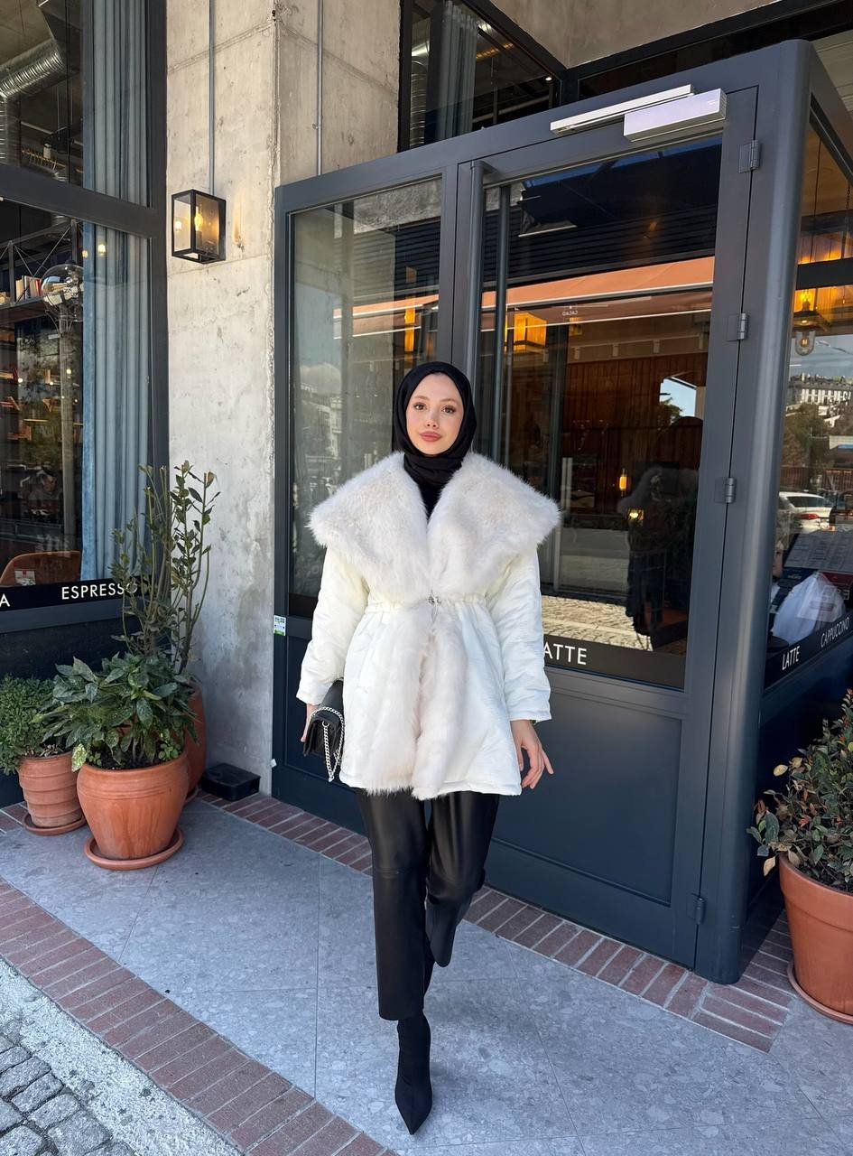Deze stijlvolle winterjas met een luxe witte bontkraag is een echte blikvanger voor de koude seizoenen. De royale, zachte kraag zorgt niet alleen voor een elegante uitstraling, maar biedt ook extra warmte. Dankzij het licht getailleerde design komt je silhouet mooi naar voren, terwijl de comfortabele pasvorm je de hele dag bewegingsvrijheid geeft.